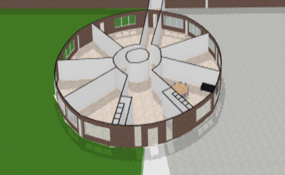 Dit is ons schoolgebouw De Boom. Wij hebben voor dit ontwerp gekozen omdat we aantrekkelijke vormen wilden gebruiken en niet alles vierkant zoals je meestal ziet. De onderbouw zit in een rond gebouw, dit hebben we gedaan omdat ze nog veel spelenderwijs leren.